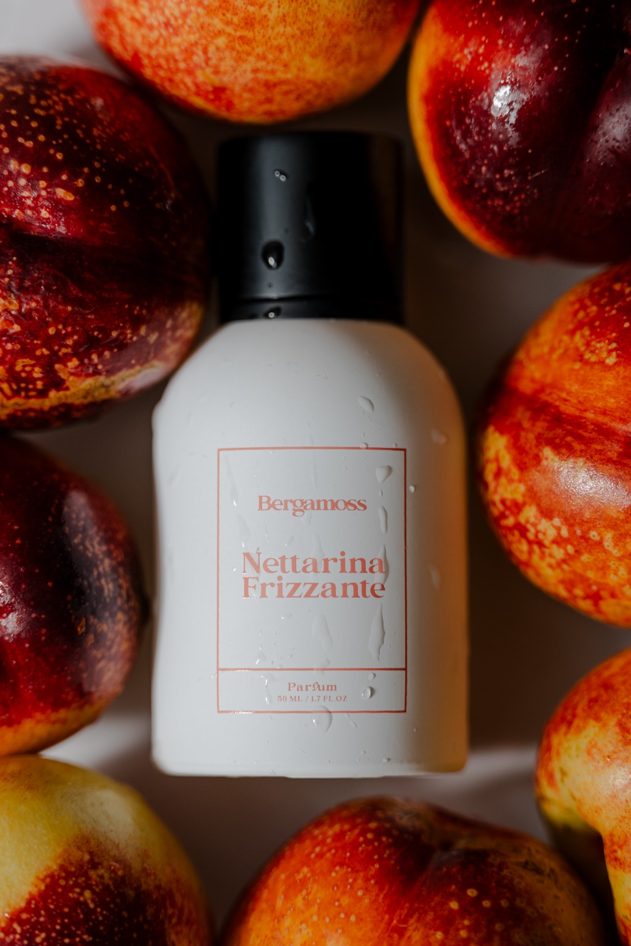 Tóny šťavnaté nektarinky, Prosecca a hroznového vína. Zkrátka rande v lahvičce. Dámská ovocná vůně z dílny parfuméra Václava Lebedy (Bergamoss).